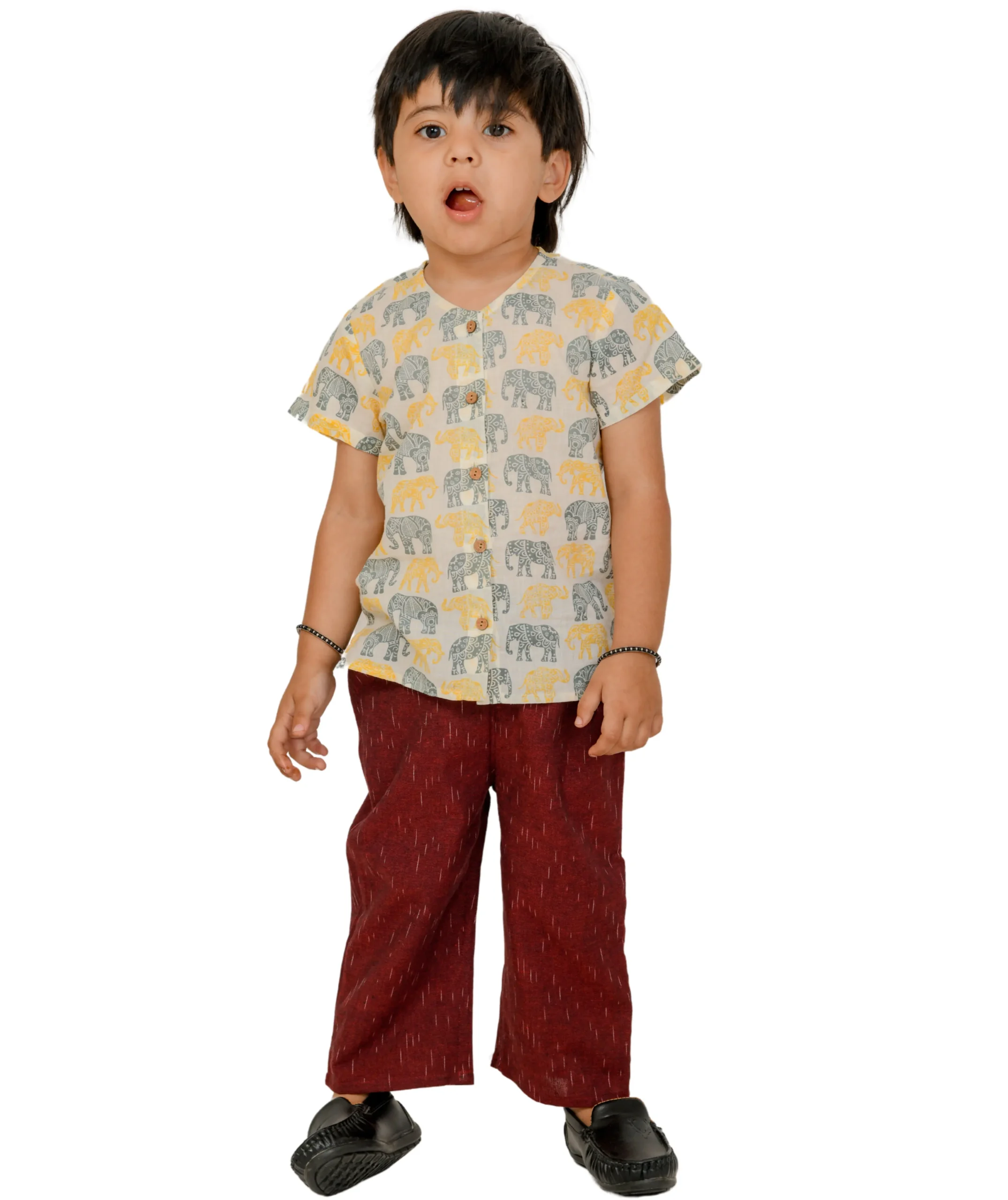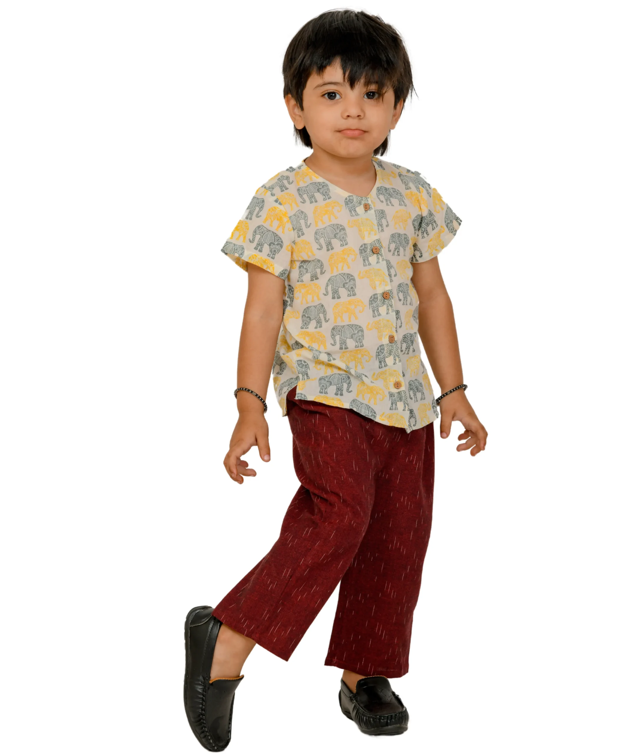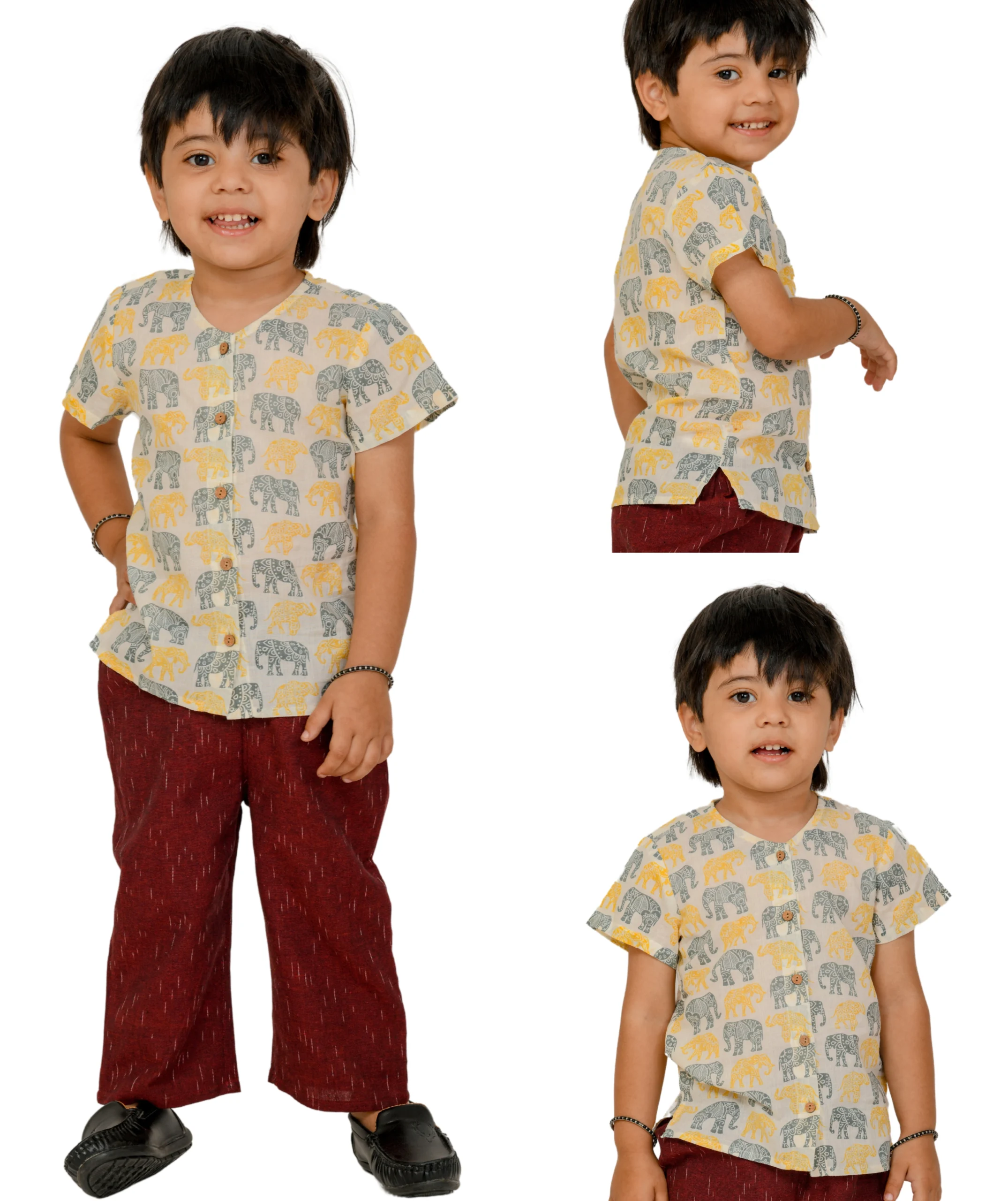 Baby Boys Summer Style Clothes Cotton Shirt & Pant Set – Beige & Black ₹800.00Select options
