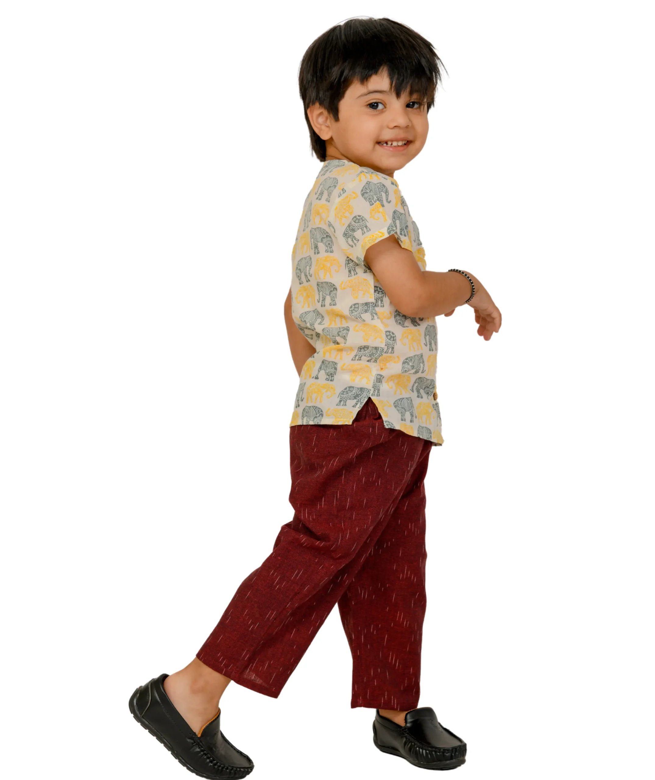 Baby Boys Summer Style Clothes Cotton Shirt & Pant Set – Beige & Black (Copy)